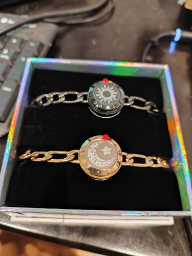 We both enjoy this little way of saying we care and are thinking of each other. Sometimes it’s just the feeling of a like tap to know your close to each other even when your not. We use the love letters, pushing the bracelet, and sharing it with family on how much we enjoy it. It’s great he’s able to wear it at work and it doesn’t get in the way either. He loves that I can tap it when driving to let him know I’m ok or not through us doing a simple couple of extra pushes on the bracelet.